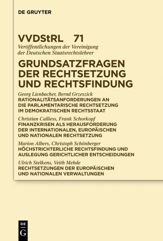 Grundsatzfragen der Rechtsetzung und Rechtsfindung: Referate und Diskussionen auf der Tagung der Vereinigung der Deutschen Staatsrechtslehrer in Münster vom 5. bis 8. Oktober 2011