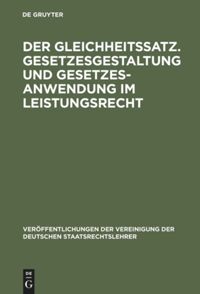 Der Gleichheitssatz: Berichte und Diskussionen auf der Tagung der Vereinigung der Deutschen Staatsrechtslehrer in Tübingen vom 5. bis 8. Oktober 1988
